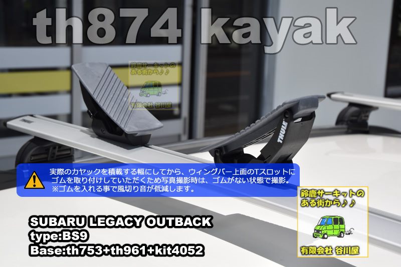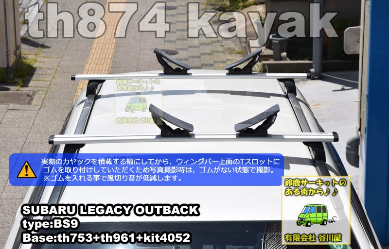カヤックの幅にあわせてth874の取付位置を変更していただく必用があるので今回お渡しする際=写真撮影時はウィングバーのTスロット/Tトラック部分には、ゴムの取り付けをしない状態でお渡ししました。