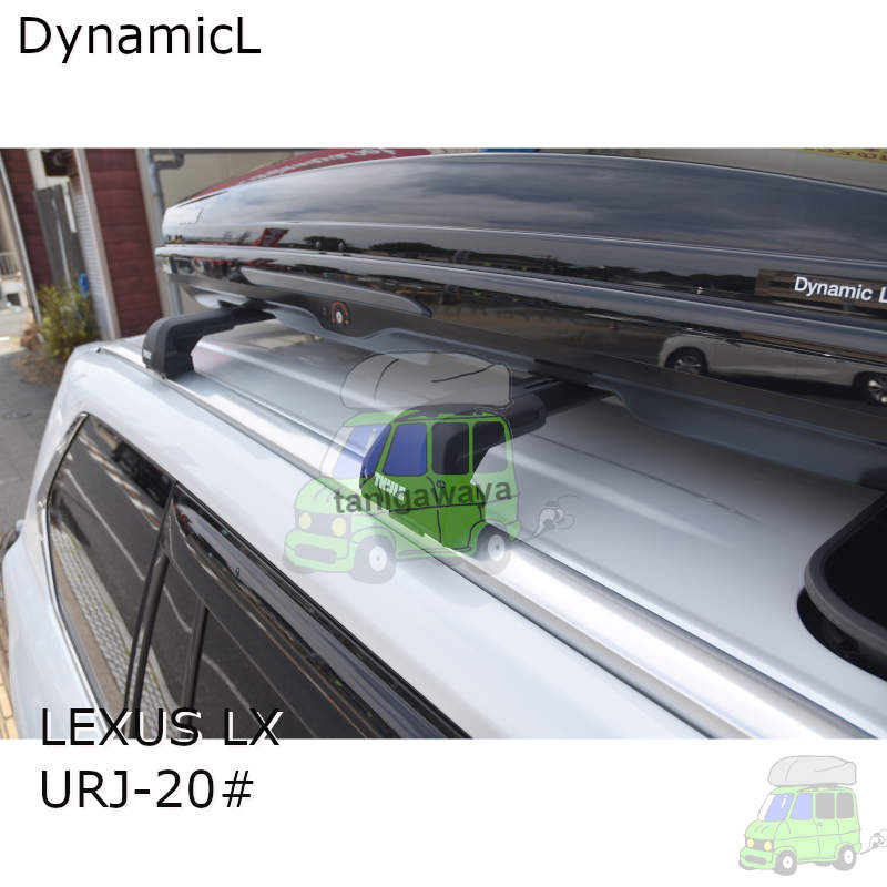 ベースキャリアはレクサス:LX:ダイレクトルーフレール車:URJ201W系 th720600/th7215B/th7214B/kit6044:Thule ブラックEvoEdge setで取付し その上にTHULEルーフボックスを取付した事例です。